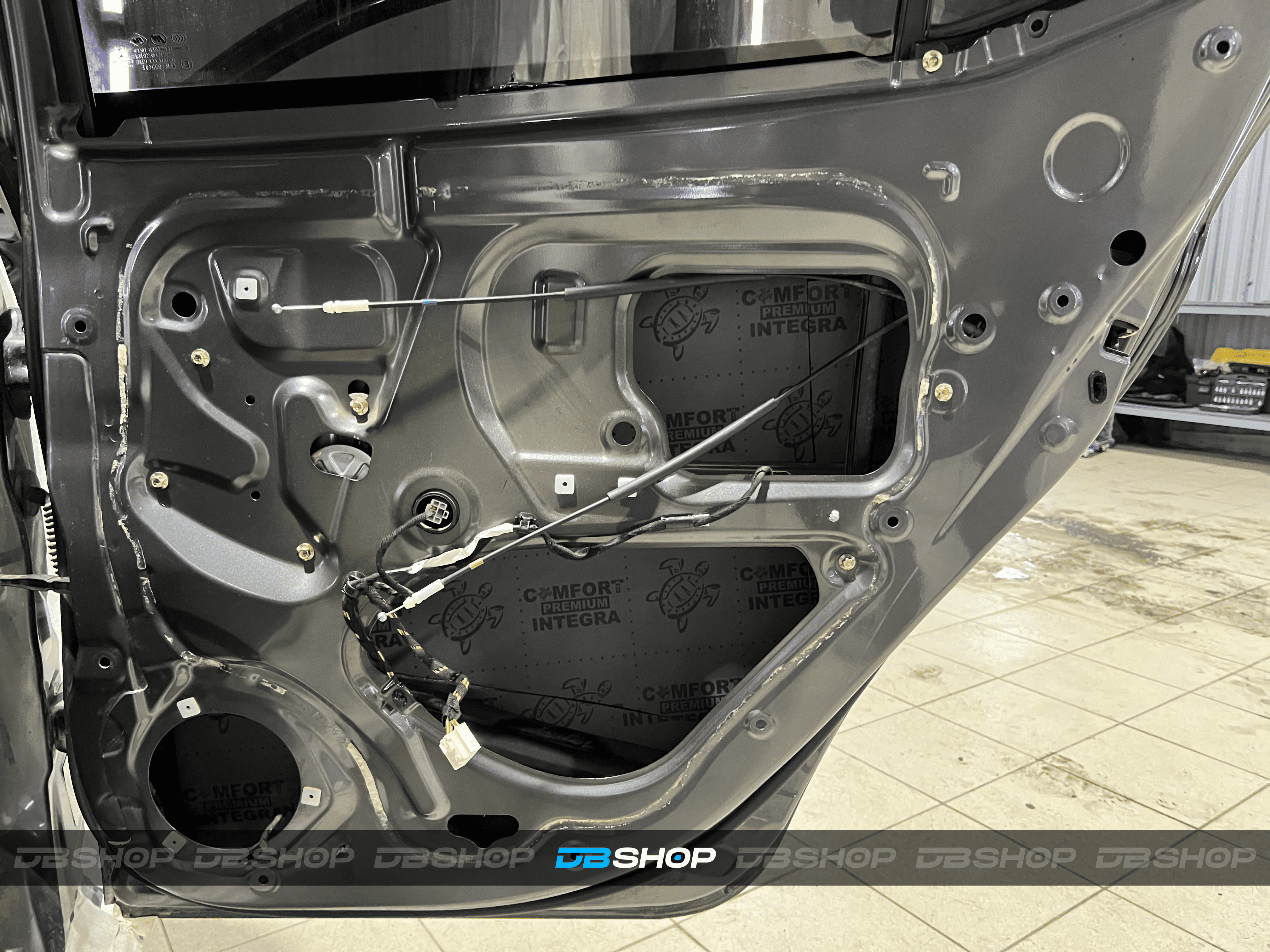 Вторым слоем на двери уложили шумоизоляцию Comfort Mat Integra, поглощающую внешние шумы и добавляющую теплоизоляцию.