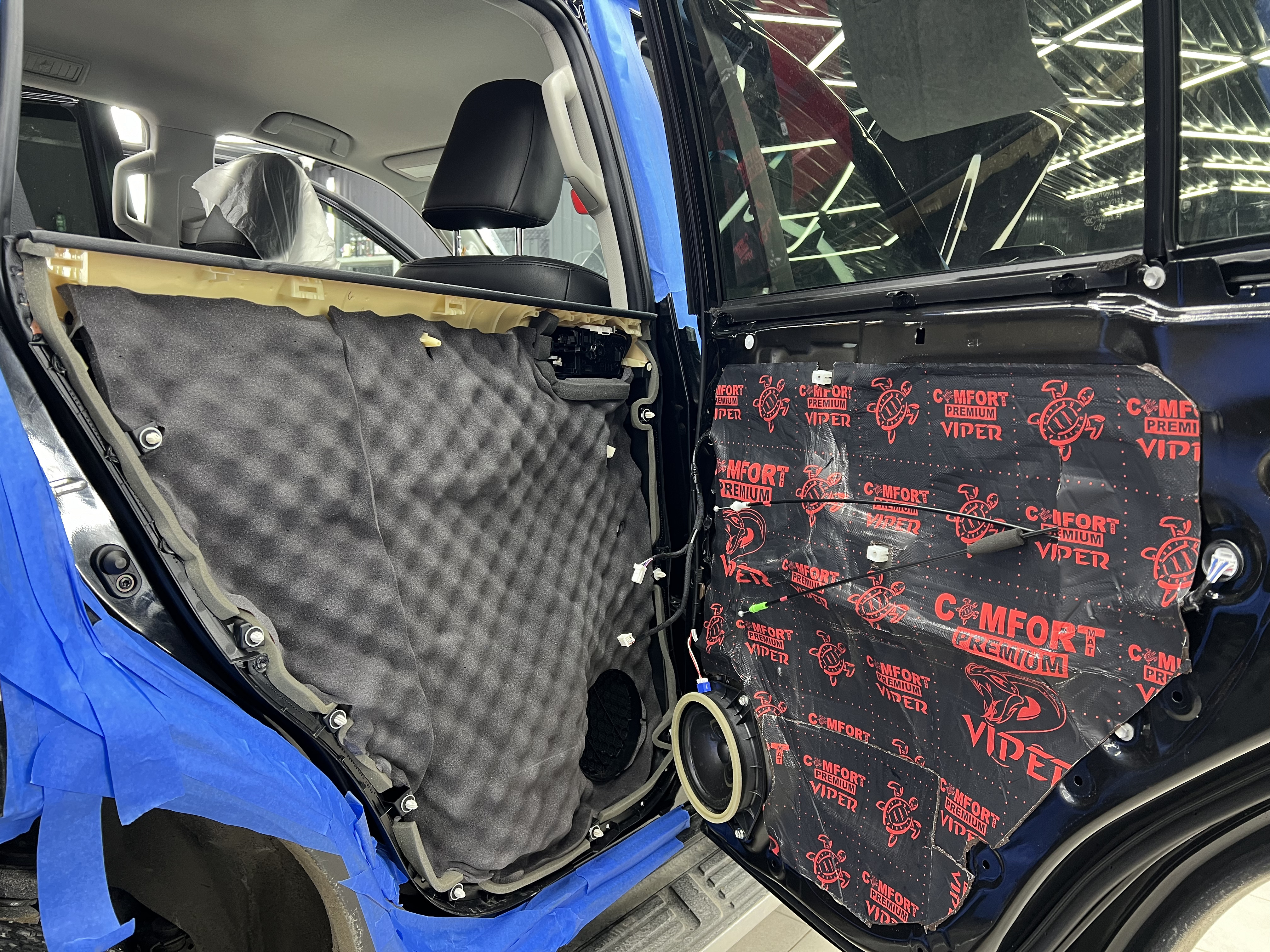 Вторым слоем на все двери уложили Шумоизоляцию Comfort Mat Integra, поглощающую внешние шумы.