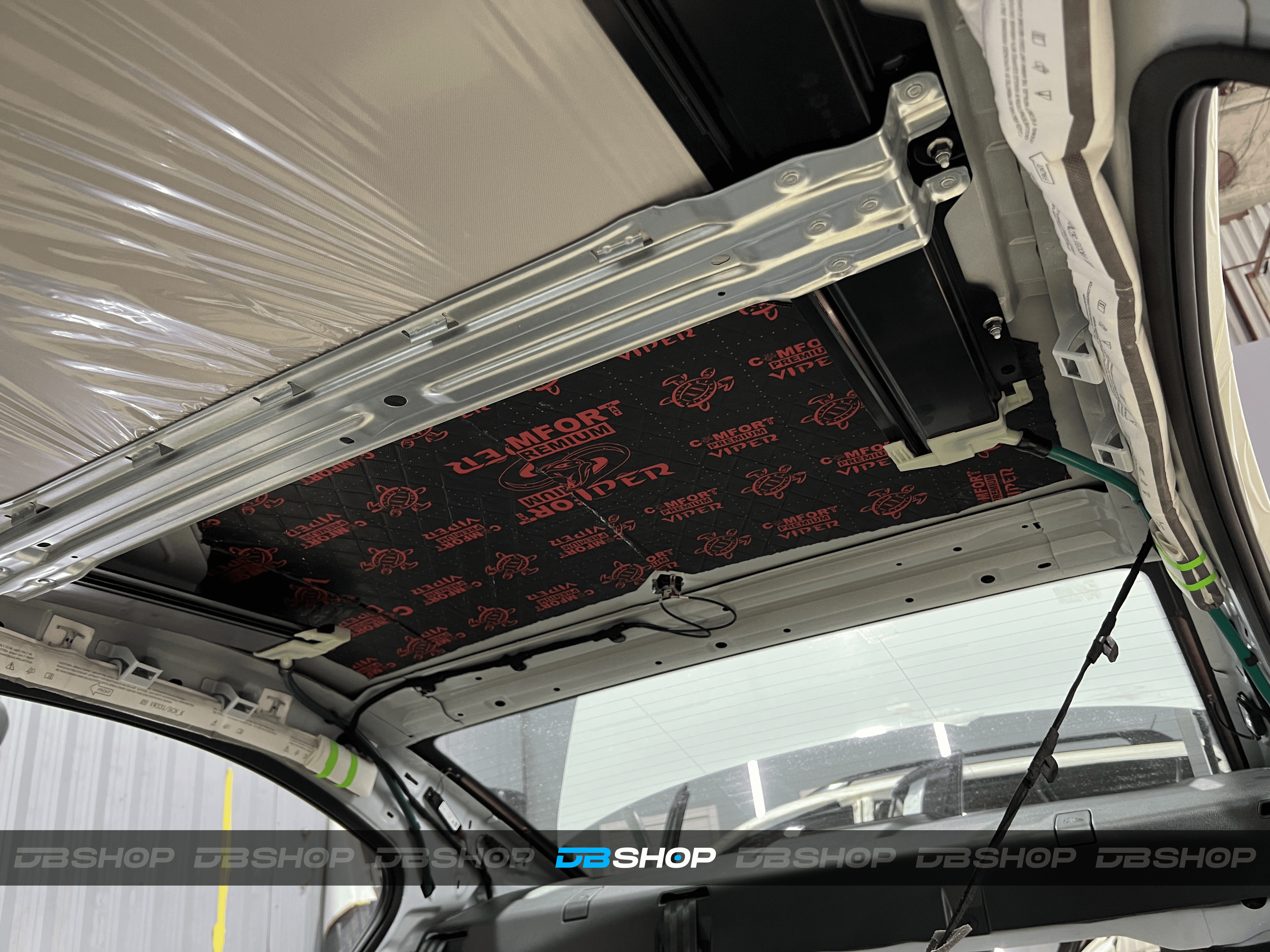 Первым слоем на крышу нанесли виброизоляцию Comfort Mat Viper. Ультралегкий инновационный виброизоляционный материал премиального уровня толщиной 3 мм.